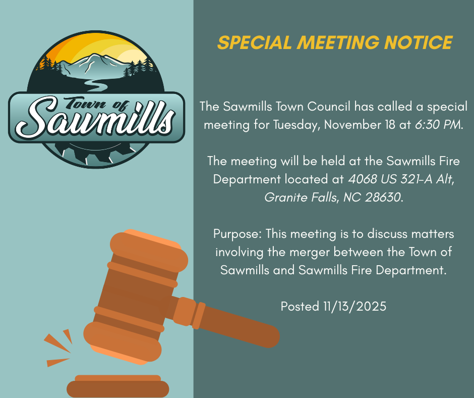 Special Meeting Notice Sawmills Town Council 11/18/25